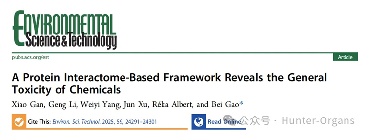 Gan, X., Li, & Gao, B. (2025). A protein interactome-based framework reveals the general toxicity of chemicals. Environmental Science & Technology, 59, 24291–24301.